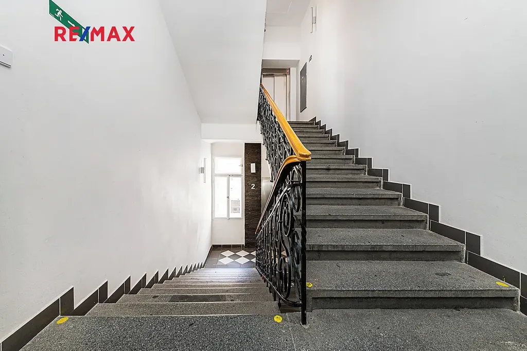 Dům je ve velmi dobrém technickém stavu, má nový výtah, nové rozvody kanalizace a střecha prošla revizí.