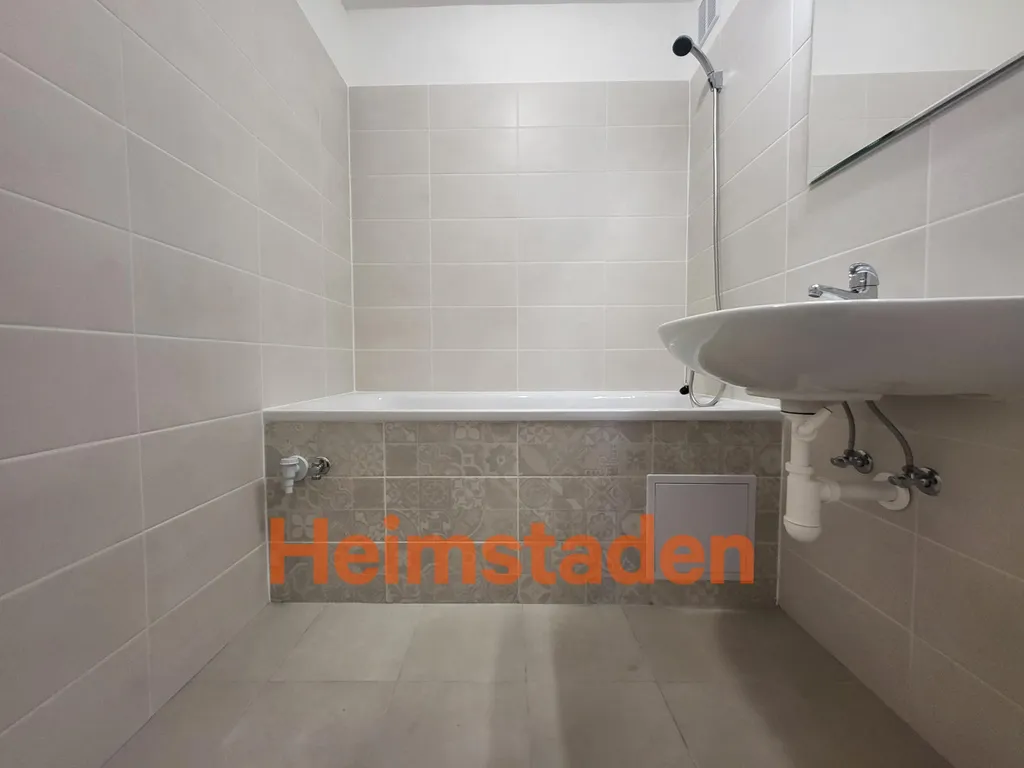 Koupelna po kompletní rekonstrukci s obklady a dlažbou.