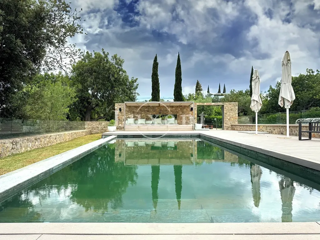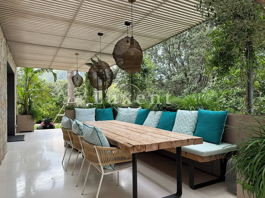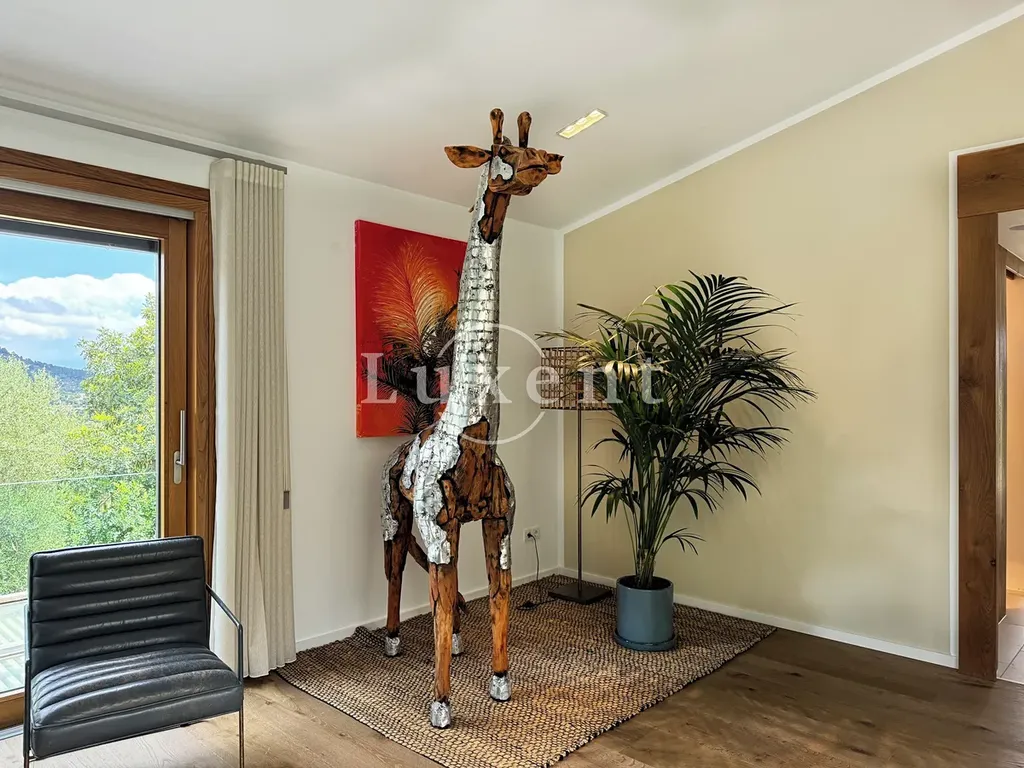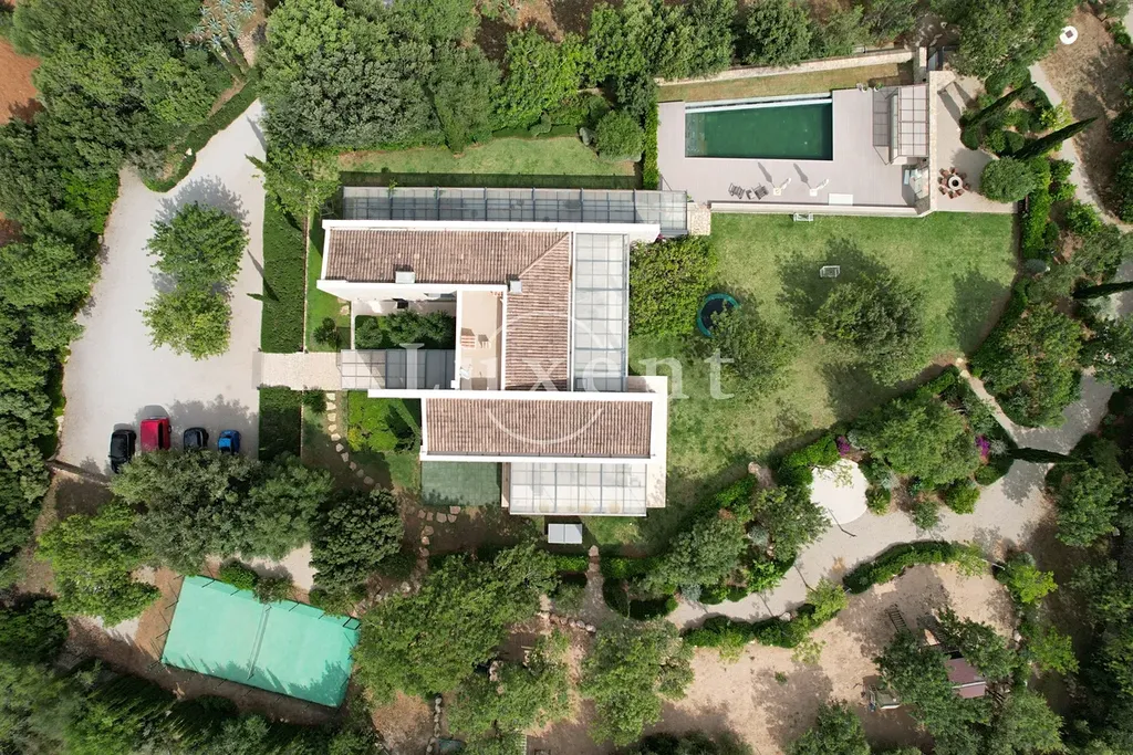 s jídelnou a kuchyní s mini vinotékou. Horní patro zahrnuje hlavní ložnici s vlastní koupelnou a šatnou, další tři ložnice, každá s vlastní koupelnou a vstupem na terasu s překrásnými výhledy na podhoří.