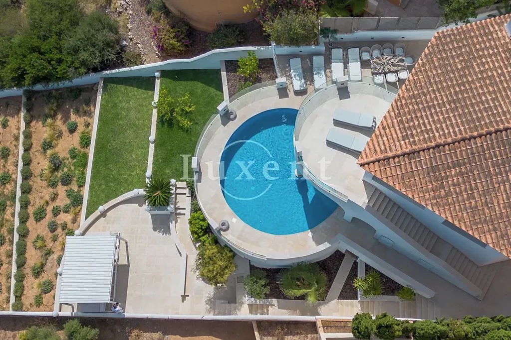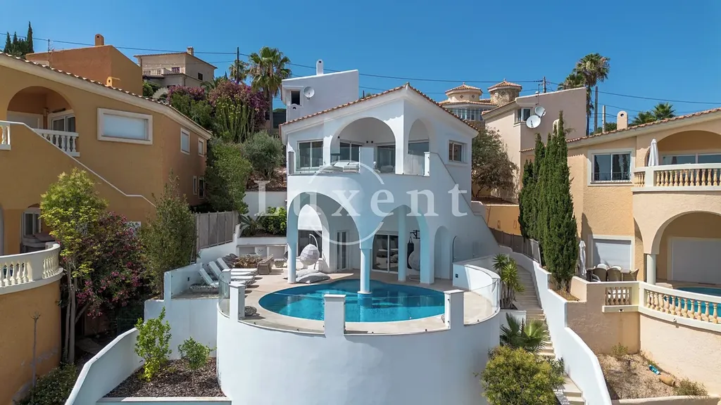 Nabízíme k prodeji luxusní 4+kk vilu na španělské Mallorce, která nabízí fantastický výhled na pláž Santa Ponsa, moře a Palmu.