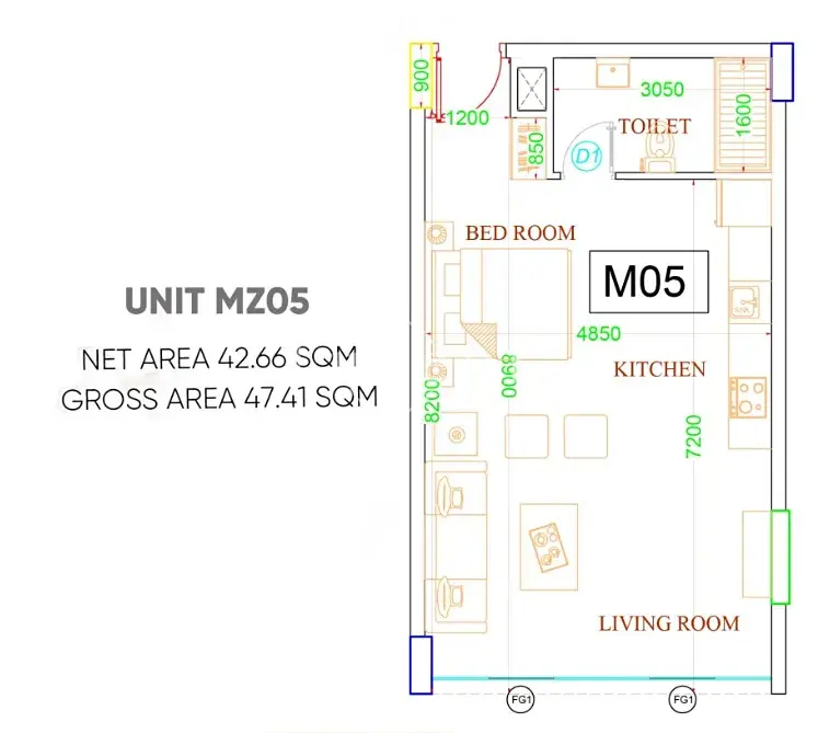 Apartmán má prostorný obývací pokoj s kuchyní a vybavenou ložnicí a je zpracován ve vysokém technickém standardu a s designovými prvky ve východním stylu. Jednotka je plně vybavená kvalitním nábytkem. Klimatizace je zde samozřejmostí.
