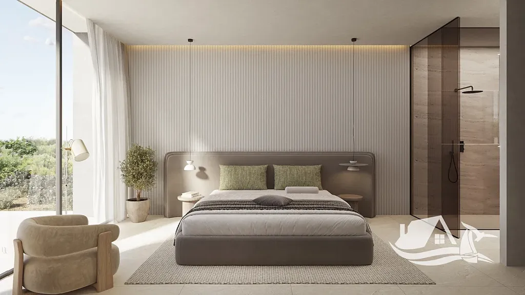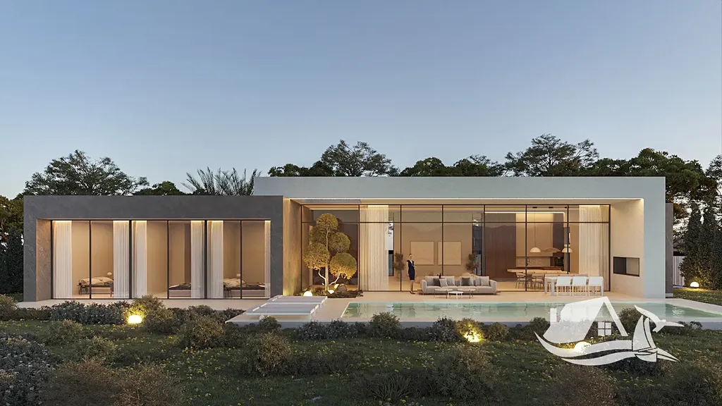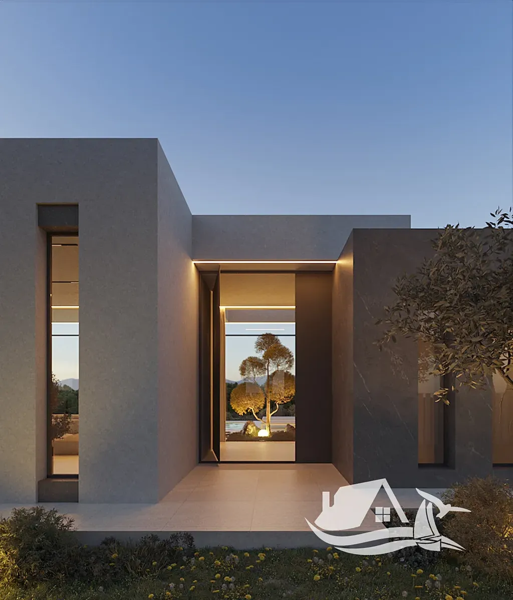 Exteriér domu je navržen tak, aby maximálně využil středomořské klima. Krytá terasa o velikosti 20,64 m² a otevřená terasa o rozloze 33,17 m² poskytují ideální prostor pro venkovní posezení, stolování i relaxaci. Soukromý bazén o velikosti 52,50 m² se stává dominantou zahrady a místem, kde si užijete horké letní dny i klidné večery. Solárium přináší další úroveň odpočinku a výhledů, zatímco pergola vytváří příjemné zastínění.