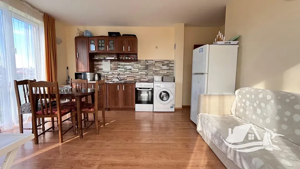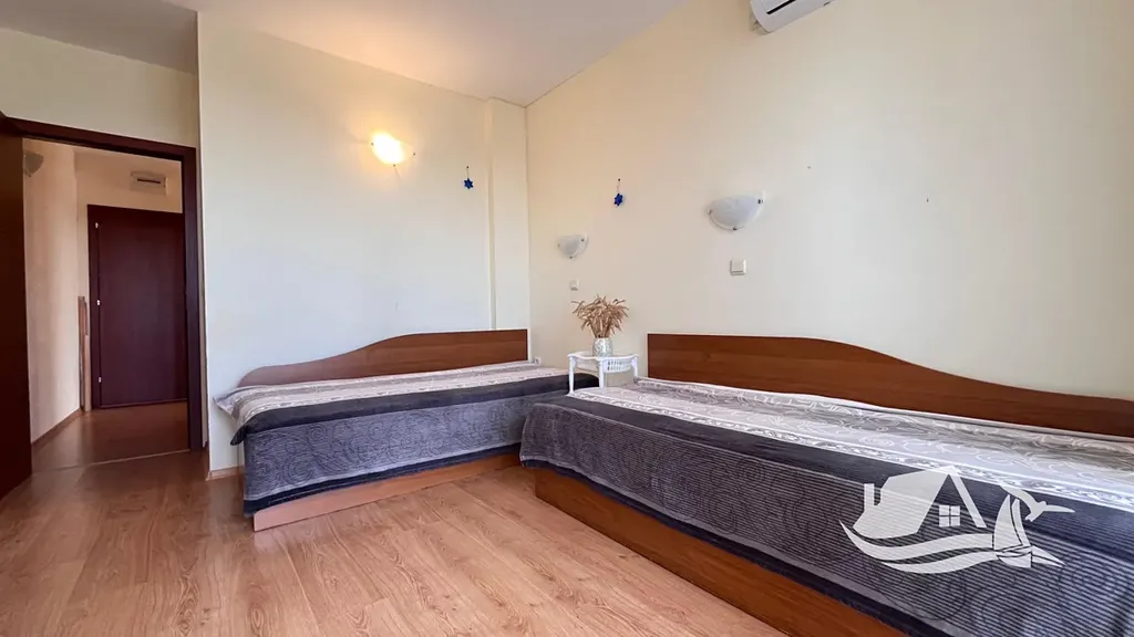 Tento světlý apartmán v komplexu Chateau Aheloy 1 působí od první chvíle otevřeně a příjemně. Nachází se ve druhém podlaží a jeho dispozice dává smysl nejen na papíře, ale hlavně v každodenním životě. Obývací pokoj s kuchyňským koutem je místem, kde se potkává den – ranní káva, společné večeře i odpočinek po návratu z pláže. Dvě samostatné ložnice pak nabízejí dostatek prostoru pro rodinu i hosty.