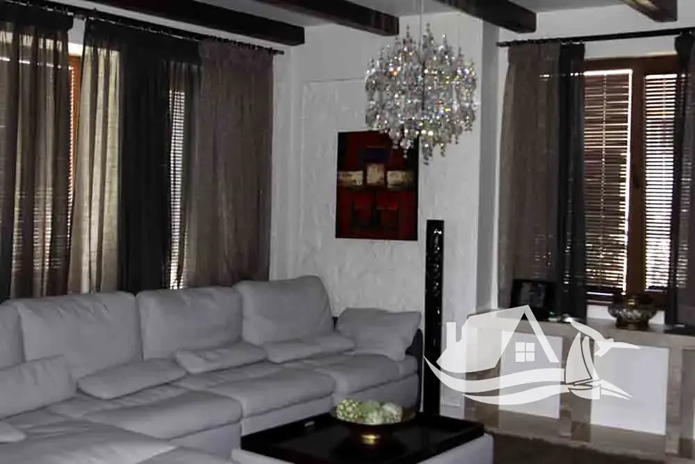 Dům je kompletně zařízený kvalitním nábytkem a spotřebiči značek Bosch a Siemens. Použité materiály i technologie odpovídají vysokému standardu, včetně klimatizace Daikin, solárních panelů, krbu s rozvody tepla a podlah z přírodního dubu.