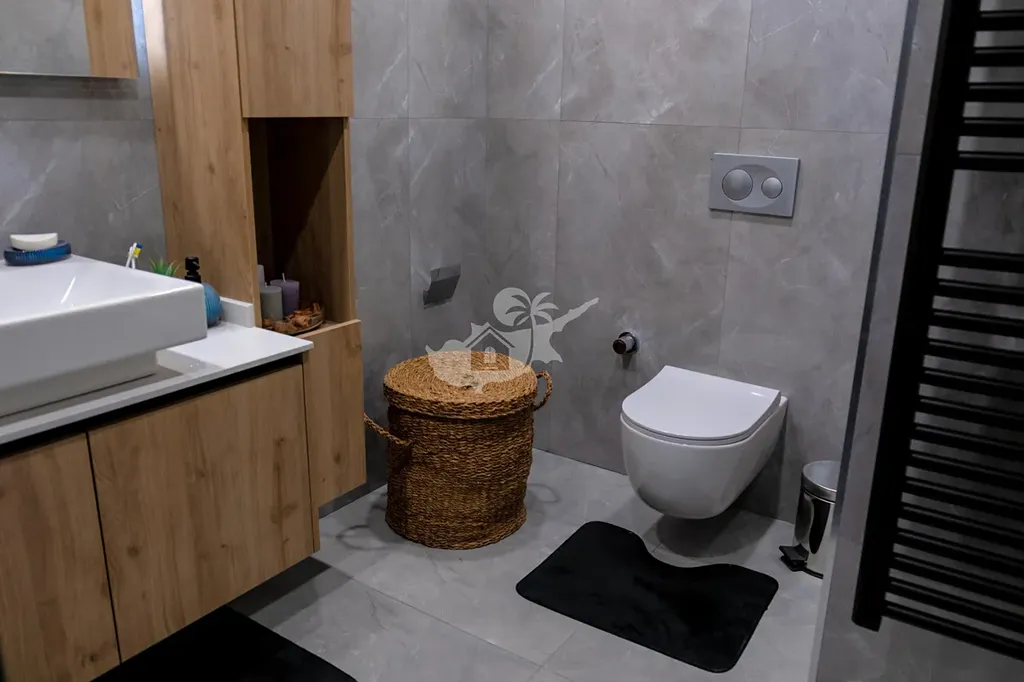 Moderní apartmán 3+kk s balkonem a krásným výhledem na moře a bazén. Nachází se jen pár kroků od pláže, nabízí soukromou pláž, venkovní bazén, fitness, sky bar a barbecue zónu.