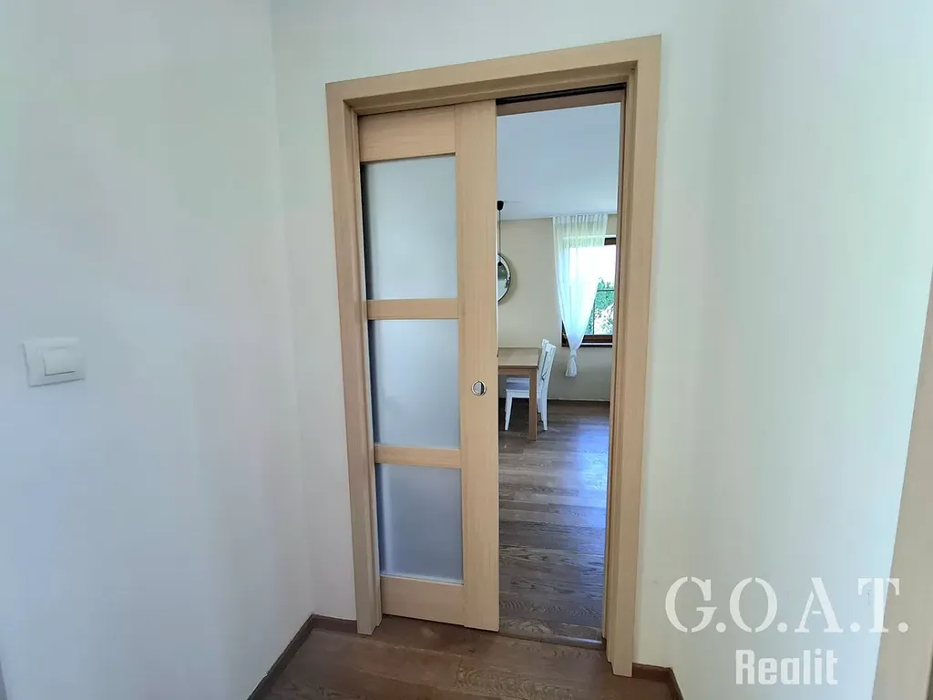 V domě se nachází tři pokoje – ložnice a dva další pokoje, které lze využít jako dětské, hostinské nebo pracovnu. Koupelna je vybavena vanou, umyvadlem, pračkou a sušičkou, toaleta je samostatná. V technické místnosti se nachází zázemí pro tepelné čerpadlo a vstup do sklepa, který nabízí dostatek úložného prostoru.