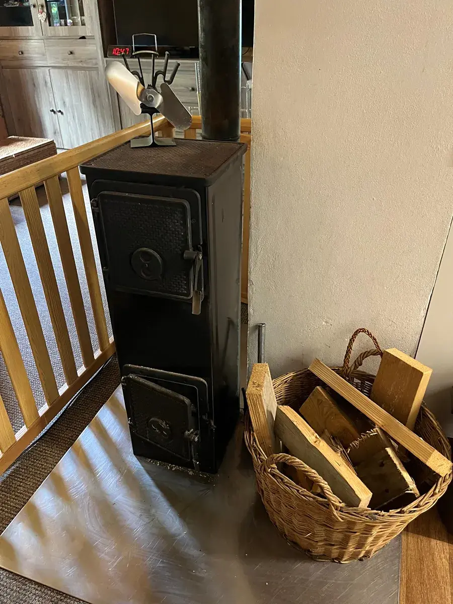 Topení zajišťují krbové kamna. Chalupa je kompletně zateplená. Přípojka elektro 230 V a 380 V.