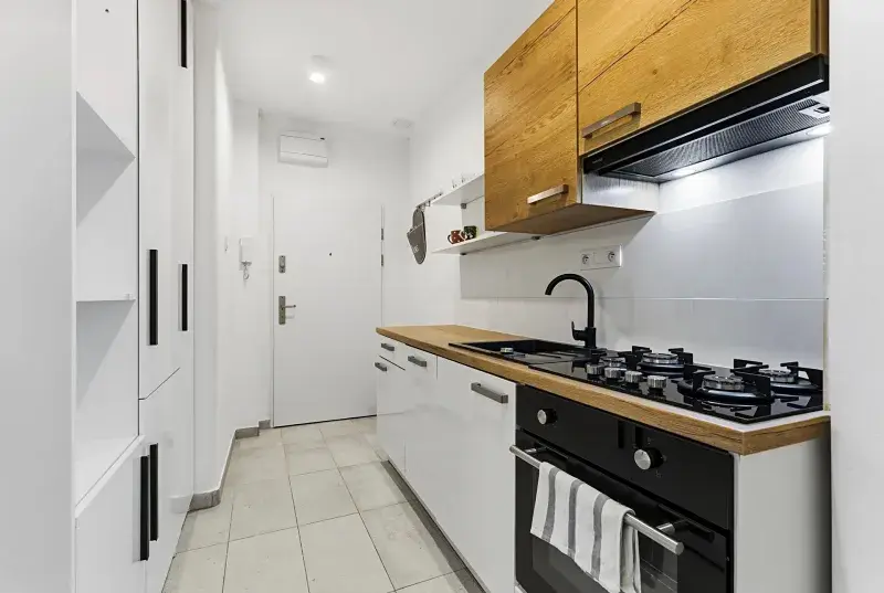 - Kompletní vybavení v ceně - nábytek na míru, vestavěné skříně, plně vybavená kuchyně, pračka, postel, pracovní kout