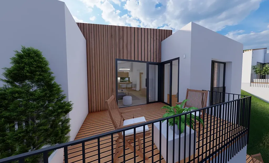 Dům o dispozici 4+kk je součástí moderního čtyřdomku.