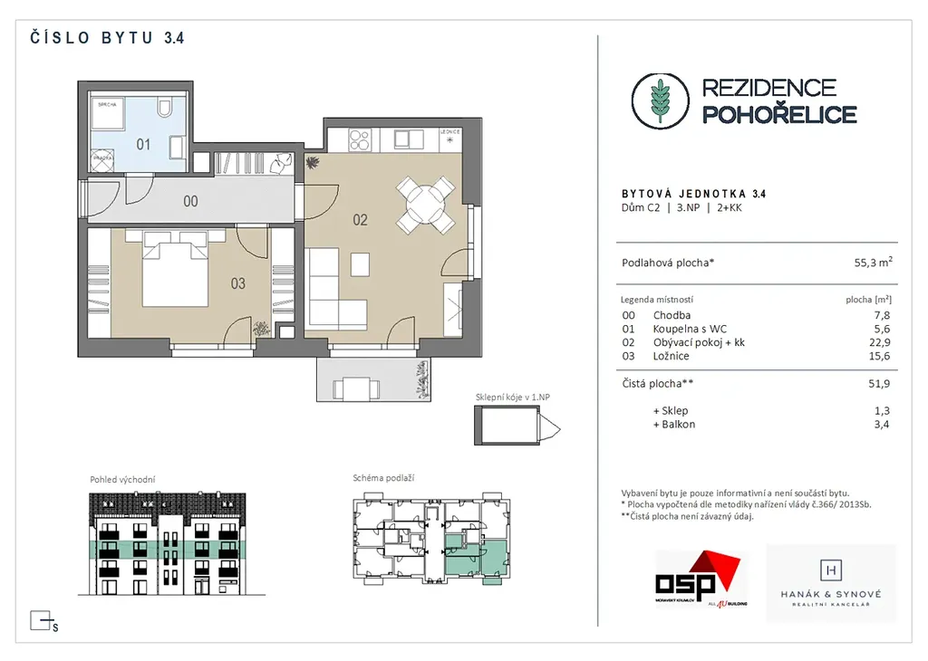 V závěrečné etapě projektu nabízíme prostorný a světlý byt 2+kk o ploše 52 m2.