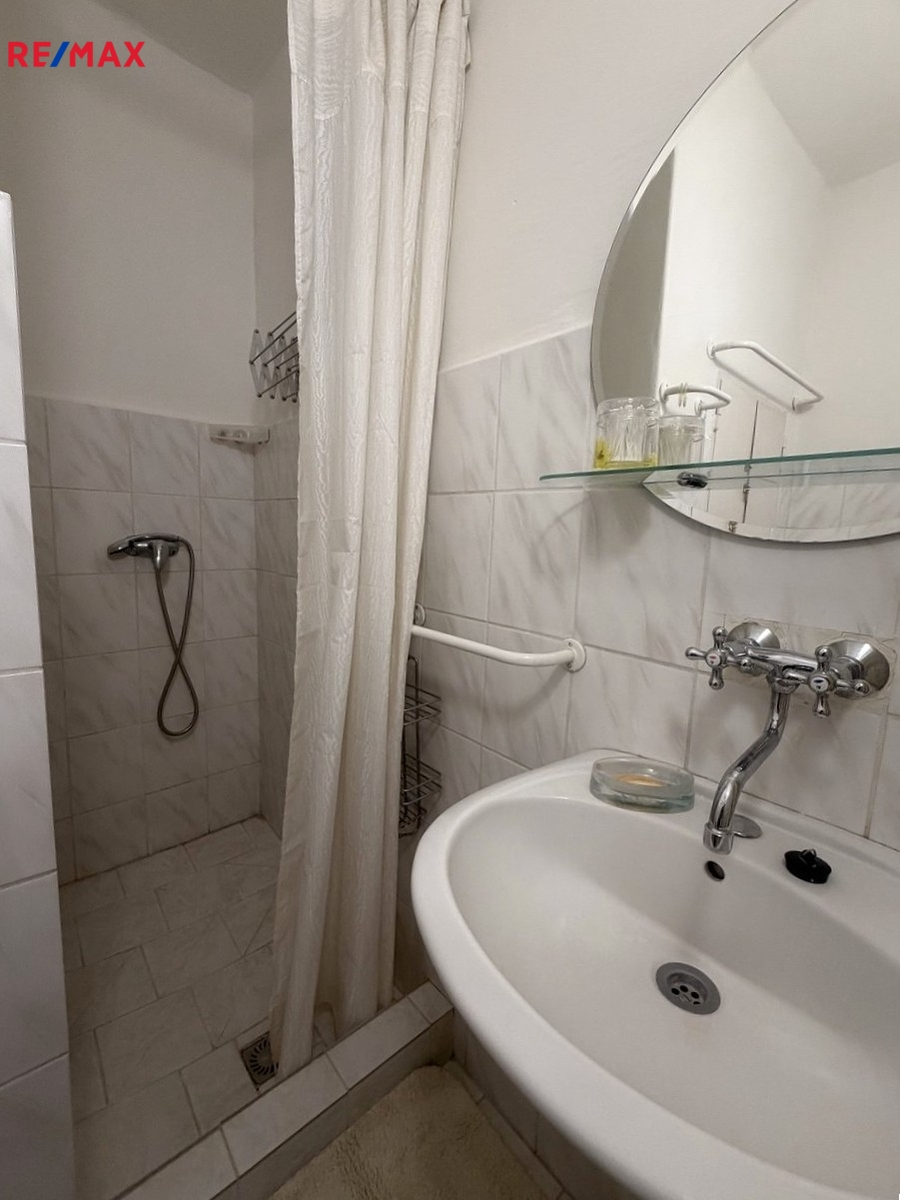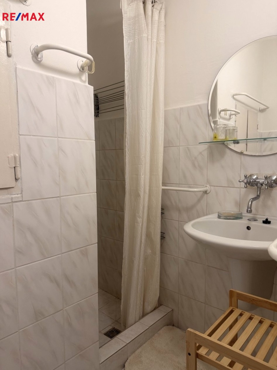 Prakticky uspořádaný obytný prostor s kuchyňským koutem nabízí dostatek místa pro pohodlný každodenní život. Součástí bytu je koupelna se sprchovým koutem a toaletou. K bytu patří sklep.