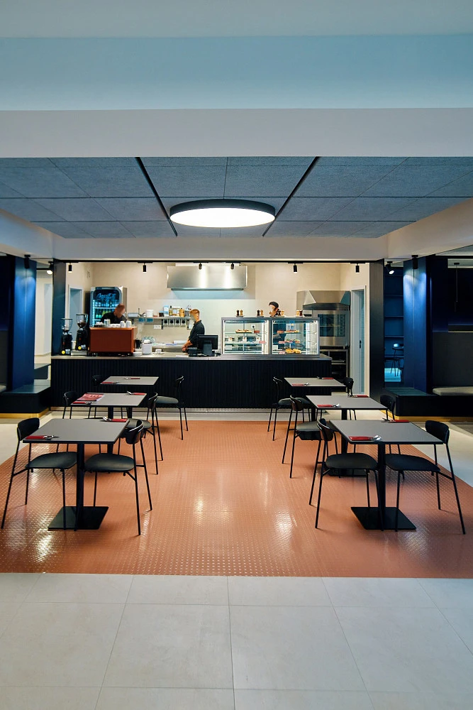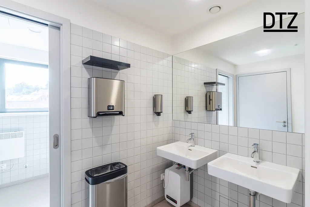 Na patře se nachází sociální zázemí, které se sdílí společně s ostatními nájemci v budově.
