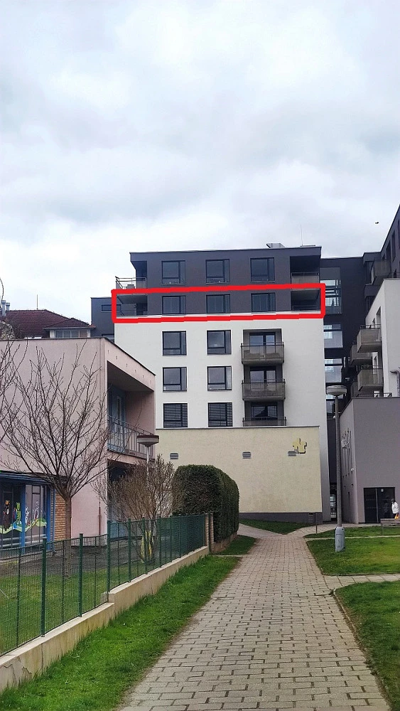 Nabízíme k prodeji výjimečný byt o dispozici 3+kk s pracovnou/hracím koutem pro děti o celkové ploše včetně teras 101,6 m², situovaný v 6. nadzemním podlaží moderního rezidenčního domu. Byt nabízí dvě prostorné částečně kryté terasy o výměře 7,1 m² a 10,3 m², které rozšiřují obytný prostor a poskytují příjemné místo k odpočinku. Díky orientaci oken i teras na východní a jižní stranu je interiér po celý den přirozeně prosvětlený a vytváří velmi příjemnou atmosféru pro komfortní městské bydlení.