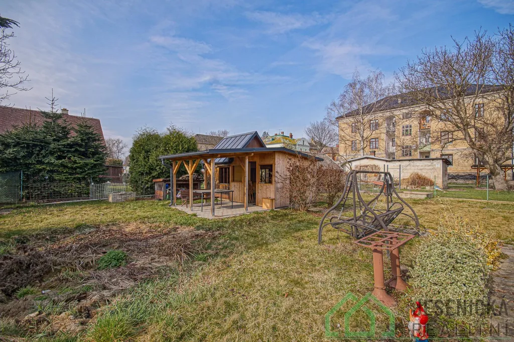 Součástí pozemku je také několik ovocných a okrasných stromů, které dotvářejí příjemnou atmosféru zahrady.