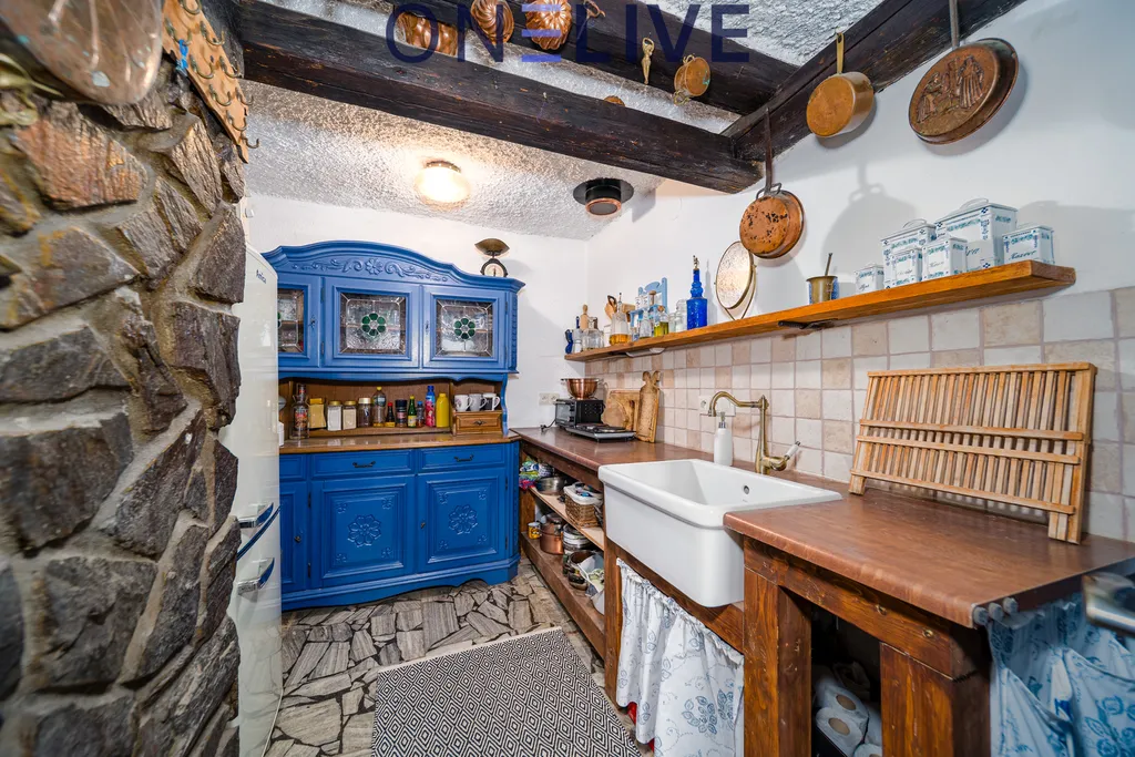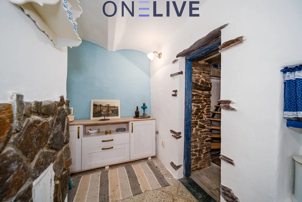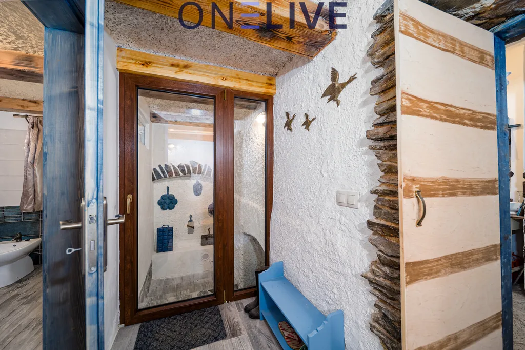 Součástí obytné části je také sklep o velikosti cca 10 m², kde se v jednom místě přirozeně usazuje voda. Tento prostor byl dosud využíván jako přírodní „chladicí zóna“ pro nápoje, podobně jako sklepní jezírko. Je zde zároveň vybudovaný odtok, takže je možné prostor udržovat nebo přizpůsobit dle vlastních potřeb.