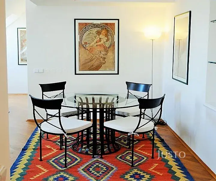 V zastoupení majitele nabízíme k pronájmu plně vybavený dvoupodlažní byt 3+1 v posledním a předposledním patře s výtahem o výměře 108 m² v secesním domě v Praze 2 – Nové Město.