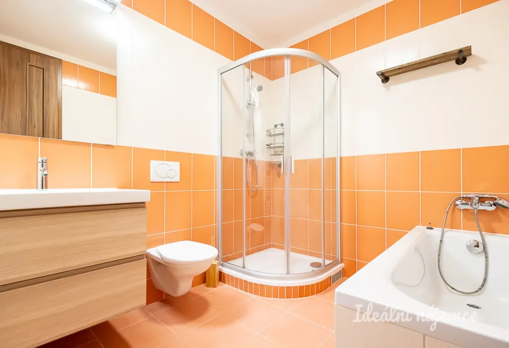 Laminátové podlahy, plastová okna, vestavěné skříně, designové interiérové dveře, vytápění a ohřev vody plynovým kotlem, klimatizace, přípojka na internet, po výmalbě a generálním úklidu.