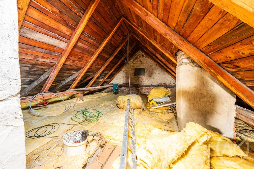 Je to tady i kompletně podsklepeno a sklepy jsou v dobrém stavu, pozemek má 1207 metrů a dům je napojen na všechny inženýrské sítě. To ti dá při rekonstrukci svobodu a možnost využít všech technologií, které současnost nabízí. Okna jsou plastová, částečně je i zateplená fasáda, krovy v dobrém stavu.