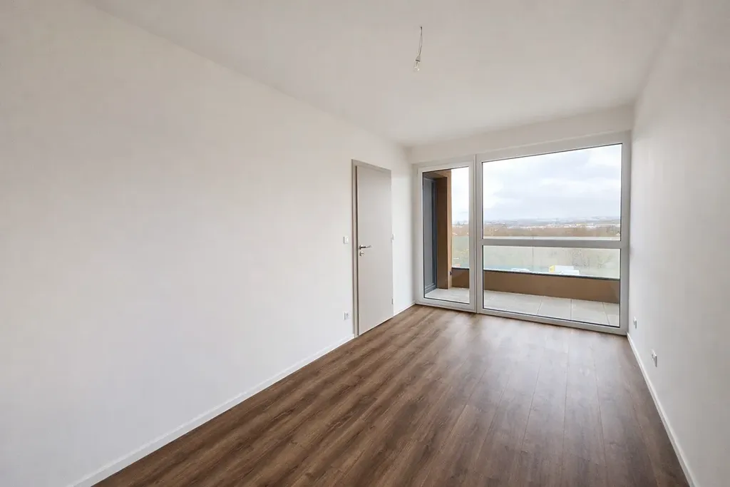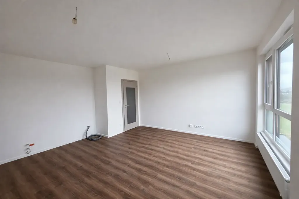 Samotný byt nabízí promyšlené dispoziční řešení, dostatek přirozeného světla a balkon s příjemným výhledem. Interiér je dokončen ve vysokém standardu – kvalitní plovoucí podlahy a velkoformátová dlažba podtrhují moderní charakter bytu. Byt je připraven na instalaci kuchyňské linky dle vlastních představ nového majitele.