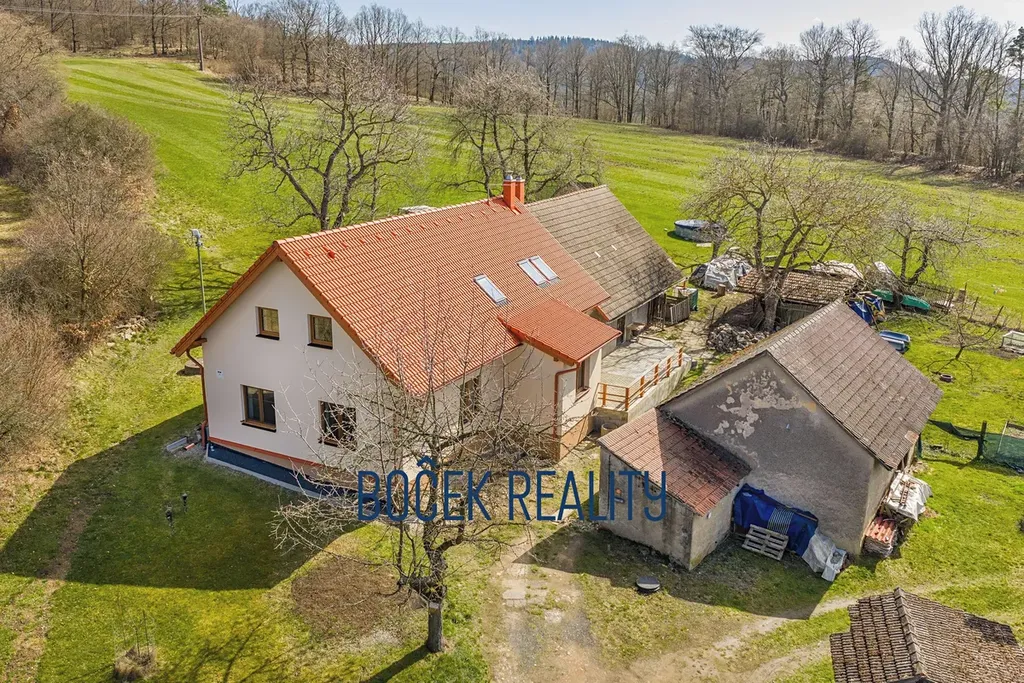 V zastoupení majitele Vám nabízíme ke koupi novostavbu rodinné usedlosti s pozemkem o celkové výměře 21.155 m² v klidné lokalitě Běřín, město Jince. Tato jedinečná nemovitost se skládá z přízemního rodinného domu o dispozici 3+1 s terasou o podlahové ploše 118 m² postavenou v roce 2022 s možností výstavby obytného podkroví s plochou 85 m². Dále je součástí této nemovitosti technicko-hospodářská část domu (kotelna, chlév, kolna) a samostatná stodola. se rozléhá na pozemku o celkové výměře 21.155 m² a nachází se na okraji brdských lesů. Tato nemovitost s rozlehlým pozemkem nabízí jedinečné možnosti pro klidný život, soukromí a případně široké využití pro chov hospodářských zvířat nebo koní. Nemovitost je v současné době napojena na vlastní zdroj vody (studna) a vlastní kanalizační jímku, nicméně v obci již proběhla výstavba obecní kanalizace a vodovodu kde bude v nejbližší době umožněno napojení na tyto veřejné inženýrské sítě. Topení je zajištěno kotlem na tuhá paliva s akumulační nádrží (1.000 litrů). Město Jince je vybaveno veškerou občanskou vybaveností a dobrou dostupností do Hořovic a Příbrami. Nechte se okouzlit touto úchvatnou nemovitostí, který může být vaším novým domovem a neváhejte nás kontaktovat pro další informace případně osobní prohlídku.