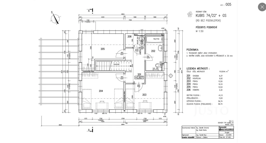 - Plocha prvního patra 56,7 m²