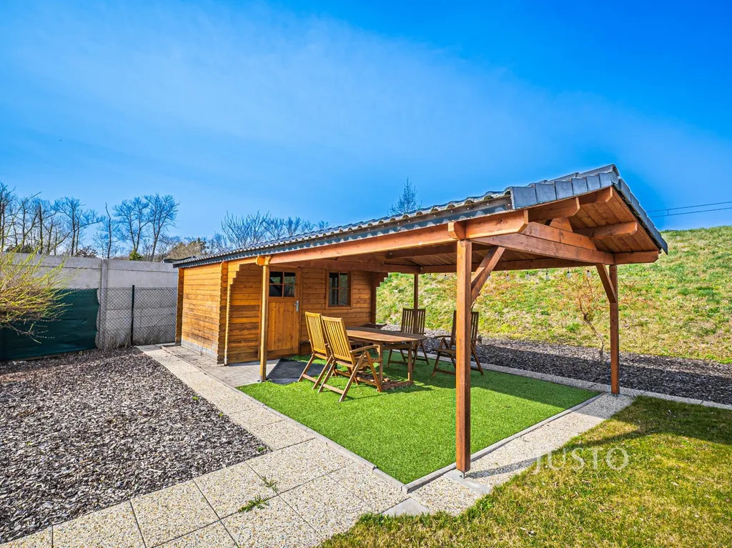 - Pergola, kryté parkovací stání, zahradní domek