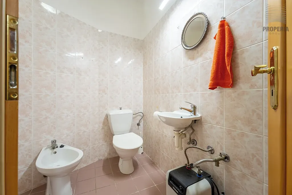 • Samostatné WC (3,6 m²) – s bidetem, umývátkem a vestavěnou skříní