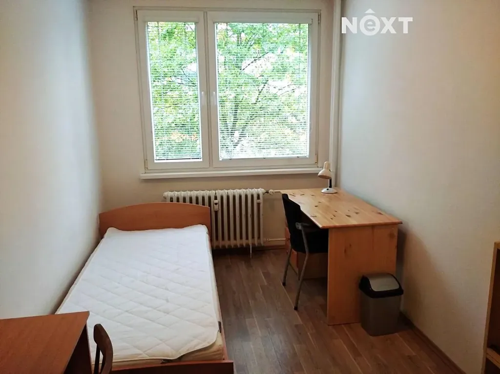 Každý pokoj je kompletně vybaven postelí s matrací, pracovním stolem, židlí a šatní skříní. V kuchyni najdete veškeré spotřebiče (plynový sporák, lednice) i jídelní zázemí. K bytu navíc náleží praktická komora na chodbě a sklepní kóje. V okolí je výborná občanská vybavenost a bezproblémové parkování přímo u domu.