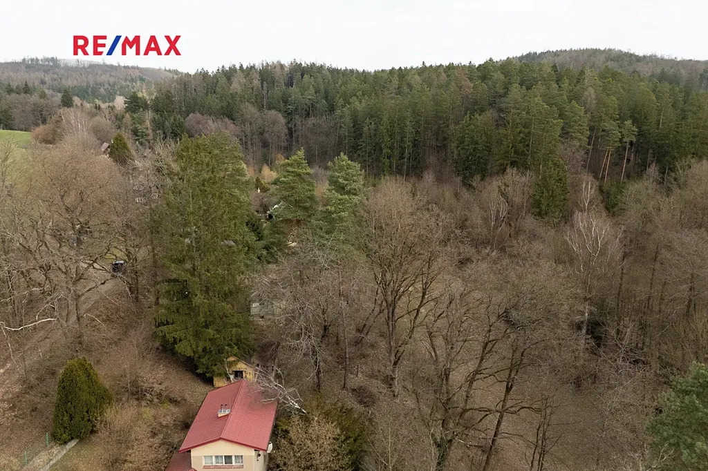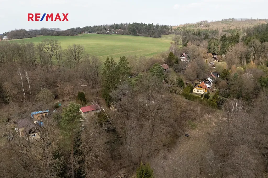 Na pozemku stojí zkolaudovaná chata (cca 25 m² zastavěné plochy), kterou lze využít nebo přestavět.