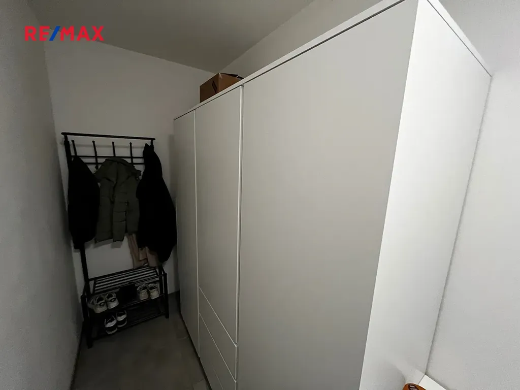 Byt má šikovnou dispozici. Za vstupem vlevo je prostor na šatnu, vpravo do prostorné koupelny s WC a sprchou a proti dveřím vstup do obytné části.