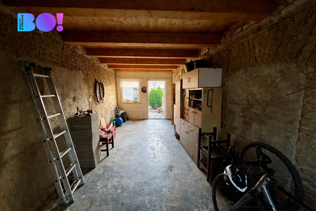 Dům je postaven ze smíšeného zdiva a aktuálně disponuje dispozicí 1+1 o podlahové ploše 36 m². Velkým benefitem je však další místnost o velikosti 23 m², která vznikla z původního průjezdu – díky tomu lze nemovitost velmi jednoduše přestavět na plnohodnotnou dispozici 2+1 o celkové ploše 59 m².