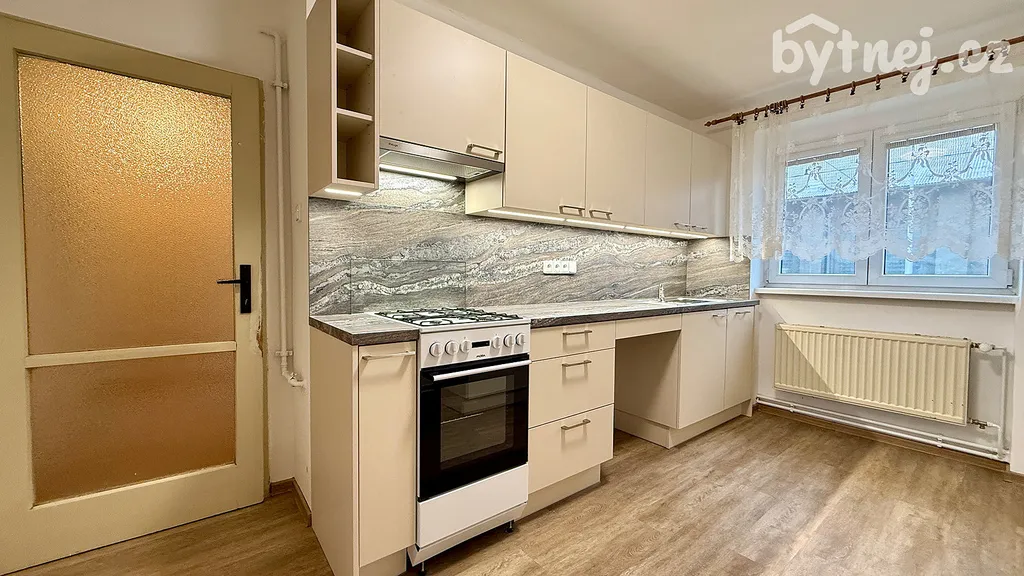 Byt se nachází v 1. podlaží (bez výtahu) s výměrou 51 m². Sestává ze vstupní chodby, koupelnou, technickou místností, WC a dvěmi pokoji. Dále v kuchyni se spotřebiči (trouba, digestoř, varná deska).