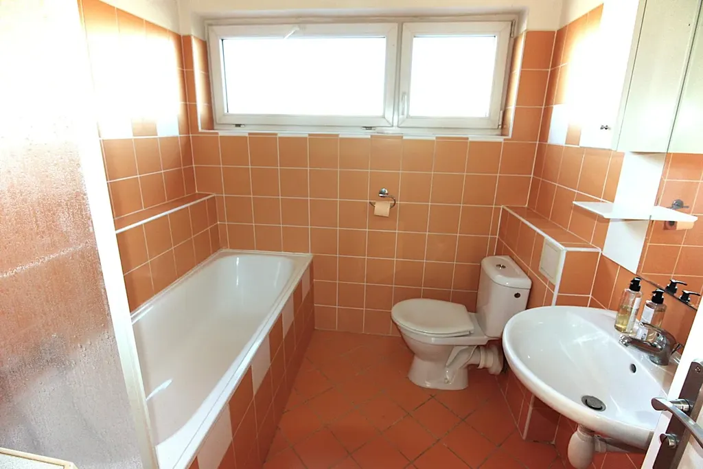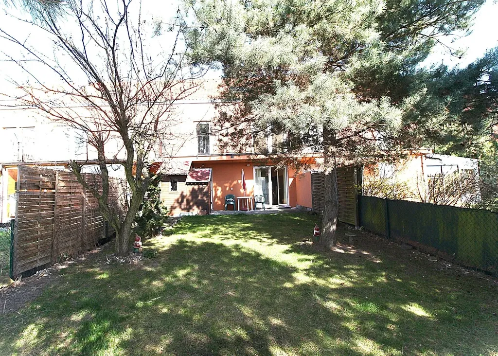 Nabízíme prostorný řadový dům, dispozičně řešen jako 4+1, se zahradou, zahradní terasou, terasou ve 2 NP domu s výhledem na zahradu a oplocenou předzahrádkou, v historické obci Jenštejn, 1 km od severovýchodní hranice Prahy. Vstup a vjezd k domu je samostatný, oddělen plotem, parkovací místa se nachází před domem na vlastním oploceném pozemku. Dům z r.2007 se skládá ze tří podlaží (dvě podlaží + podkroví), celková užitná plocha domu je 144,53m2. V 1. podlaží domu se nachází kuchyň (12 m2), prakticky propojena s obývacím pokojem (22 m2), z obývacího pokoje je vstup na zahradní terasu, do zahrady se vzrostlými stromy. Zahradní domek slouží skvěle jako úložný prostor. V 1. podlaží domu se nachází WC s umyvadlem. Do 2. podlaží vede pohodlné dřevěné schodiště, zde jsou dvě ložnice (17,5 a 16 m2) a koupelna s vanou a WC (přes 5 m2), s dostatkem denního světla, v koupelně je umístěný kombinovaný plynový kotel s integrovaným zásobníkem, který zajišťuje vytápění domu a ohřev vody. Z jedné z ložnic je vstup na terasu. Z terasy a zahrady, zahradní terasy je díky tomu, že se dům nachází na kraji obce, volný výhled. Příjemné podkroví je velké 40 m2, není problém zde dobudovat další koupelnu. Dům je napojen na veškeré inženýrské sítě (el., vodu, kanalizaci, plyn). V místě je velmi dobrá dopravní dostupnost (bus na Černý Most, Letňany), v obci se nachází pošta, škola, školka. Koupi domu lze financovat prostřednictvím hypotečního úběru, který rád vyřídí náš specialita. K dispozici ihned.
