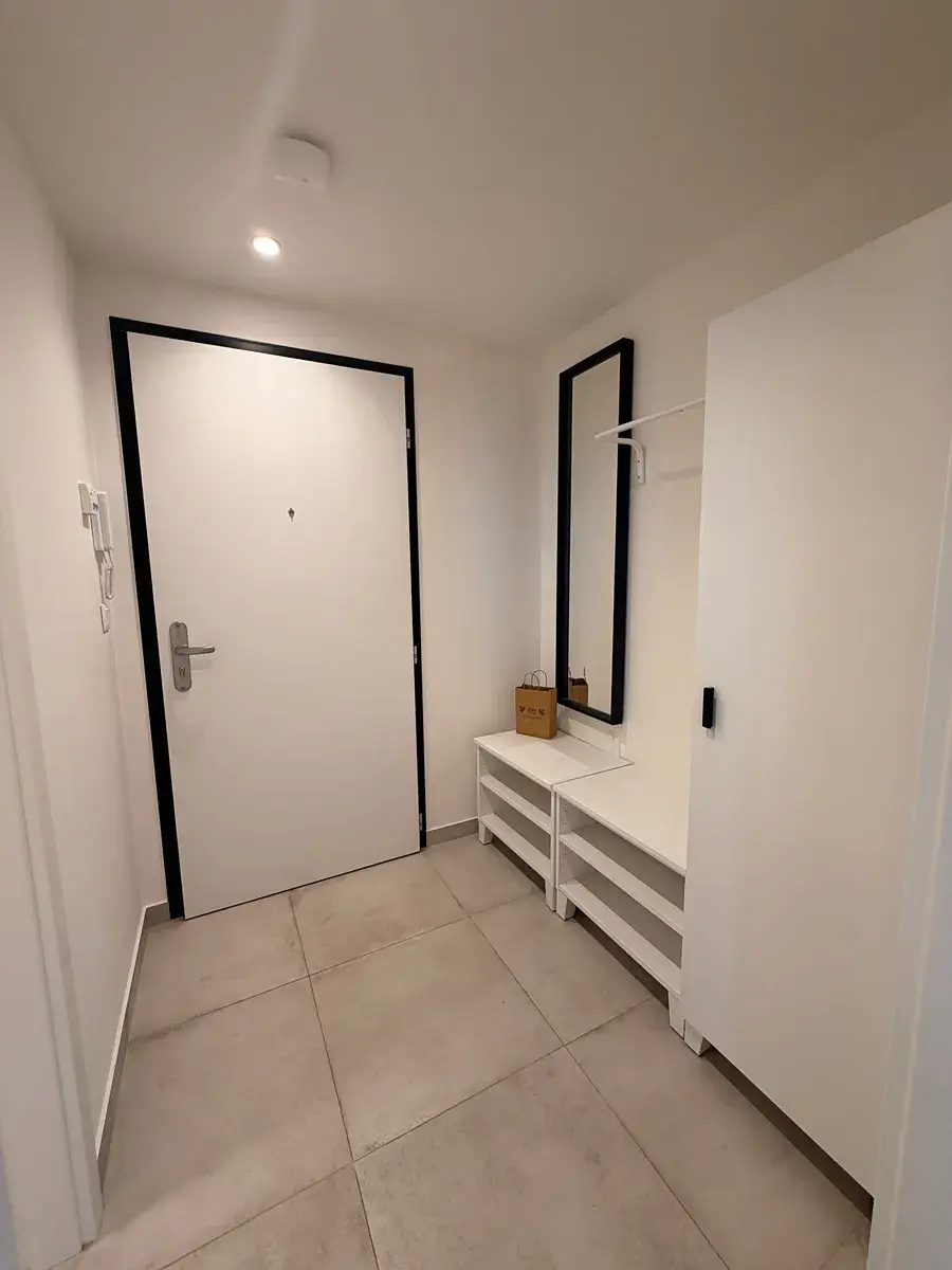 Samotný byt byl navržen a kompletně zařízen architektem developerské společnosti, která je zároveň majitelem nemovitosti, což se promítá do promyšleného konceptu interiéru, kvality materiálů i celkové estetiky. Interiér působí čistě, moderně a nadčasově, s důrazem na funkčnost, komfort a detail.