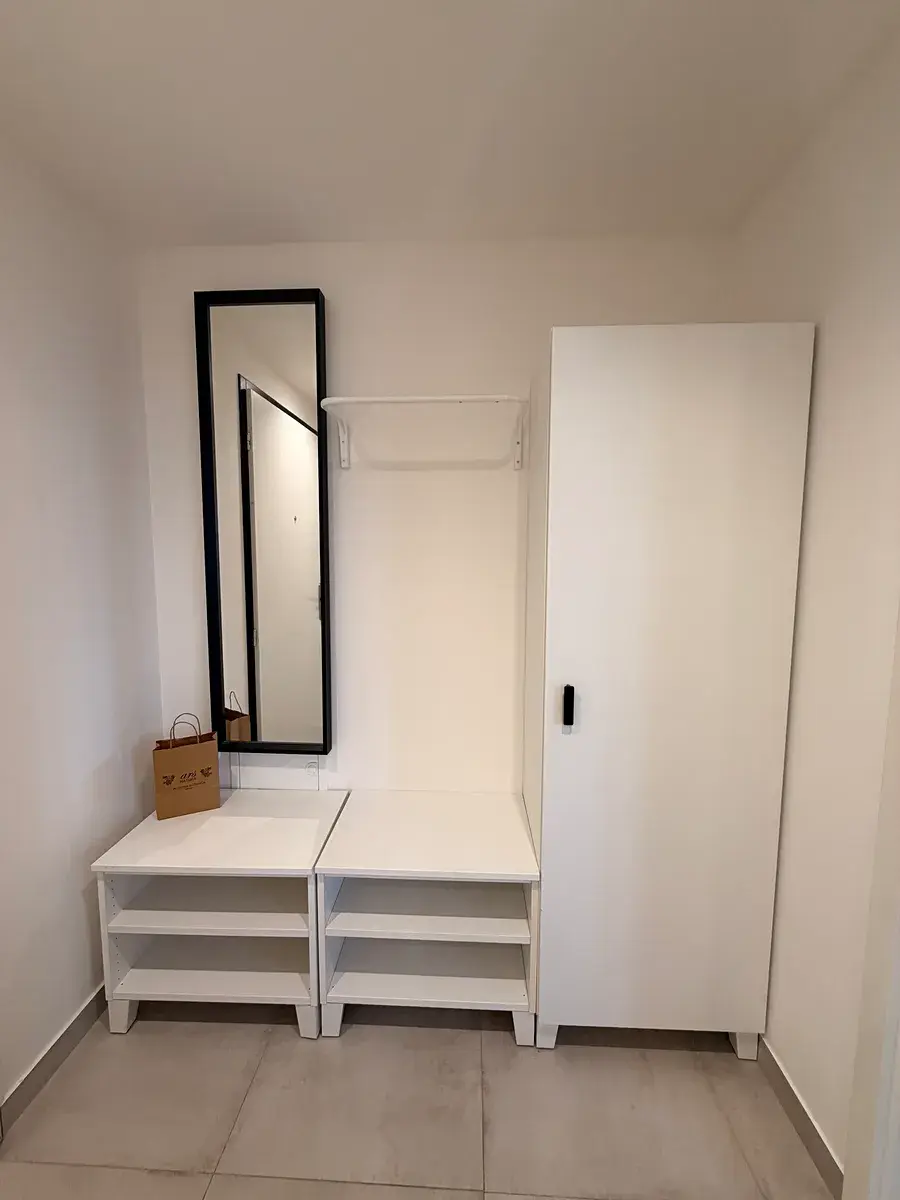 Byt je částečně zařízen nadstandardním nábytkem na míru – k dispozici je plně vybavená kuchyňská linka, jídelní stůl, designová sedačka, dvojlůžko, šatní skříň i stylové osvětlení, vše v jednotném designu.
