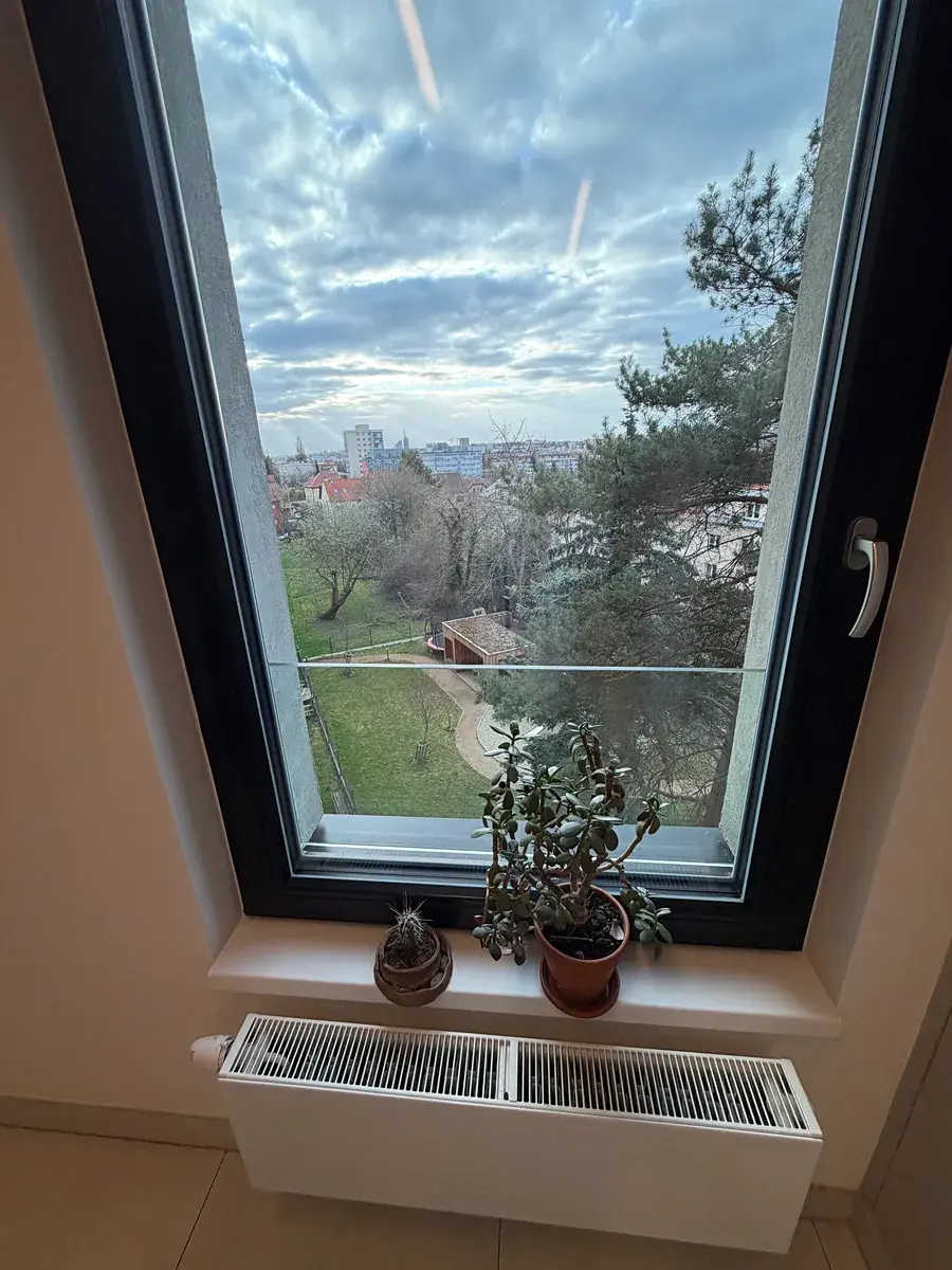 Velkým benefitem je západní orientace bytu, která zajišťuje dostatek přirozeného světla v odpoledních hodinách. Komfort bydlení dále zvyšují předokenní žaluzie, které umožňují regulaci světla i soukromí.