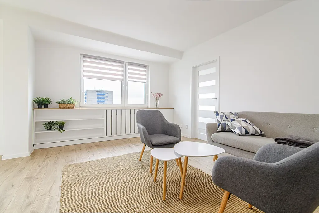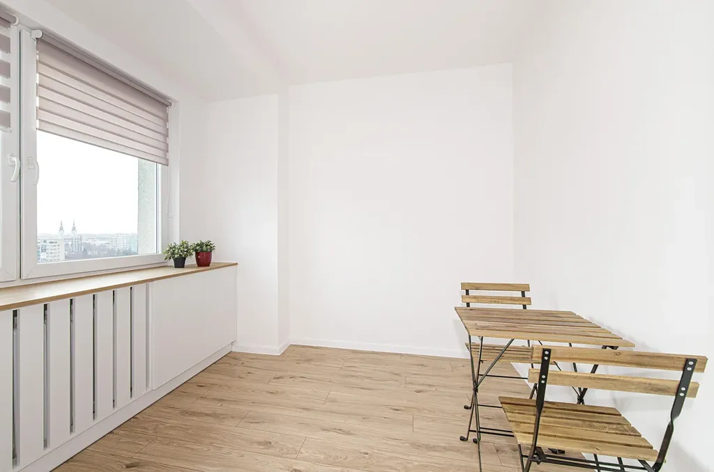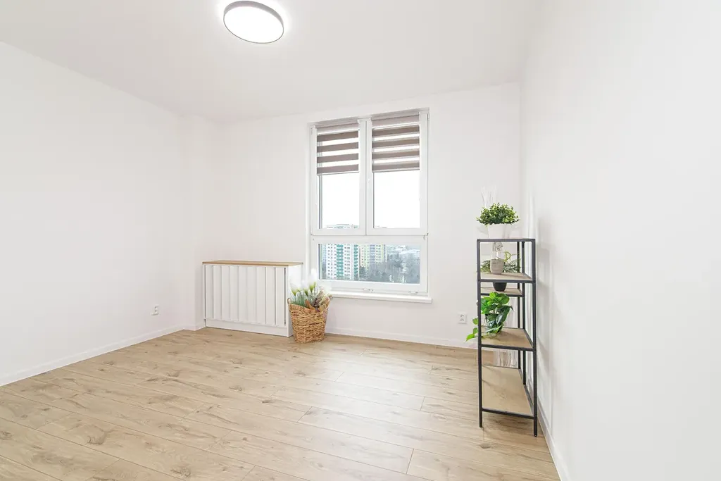 Radiátory jsou osazeny praktickými kryty s úložným prostorem, ve všech oknem jsou roletky.