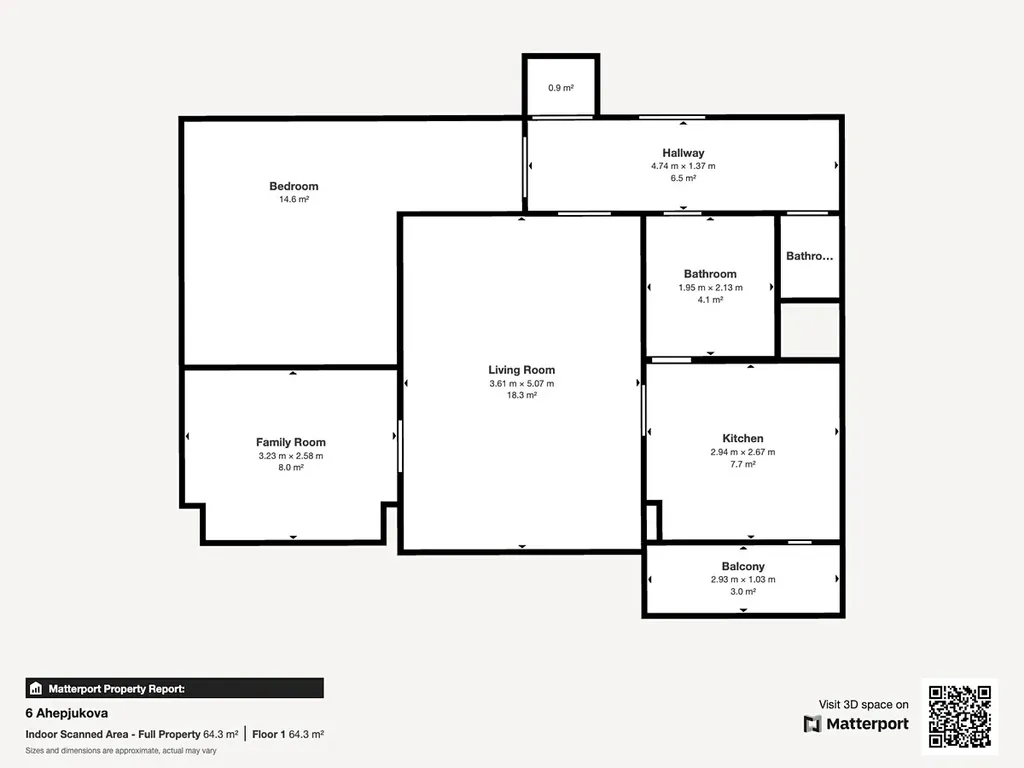 Plocha bytu včetně příslušenství je 66,68 m2 (z toho balkon 2,7 m2, sklep 2,07 m2).