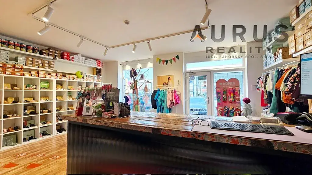 Prostor je dělen na hlavní prodejní plochu s výlohami do ulice, místnost nyní využívanou jako sklad hned za obchodem, dále kuchyňku a samostatnou místnost s toaletou. Obchod je umístěn přímo proti vlakovém nádraží Praha Radotín. Je vhodný pro obchod a služby, ovšem ne pro gastro provoz.