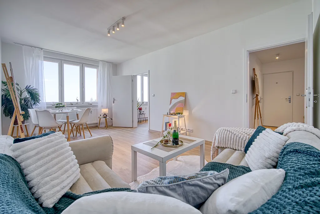 Byt se pronajímá nezařízený (s výjimkou kuchyňské linky s výše uvedeným spotřebiči, vany, umyvadla, toalety), což umožňuje nájemci přizpůsobit interiér vlastním potřebám.