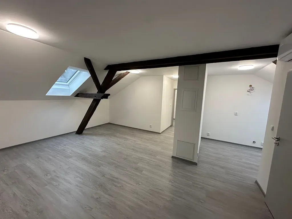 Veškeré sanitární vybavení je z kvalitních materiálů. Okna zn. Velux, dveře Porta Doors, sanita od firmy Ptáček, tepelné čerpadlo zn. Dražice. K bytu náleží sklepní prostor.