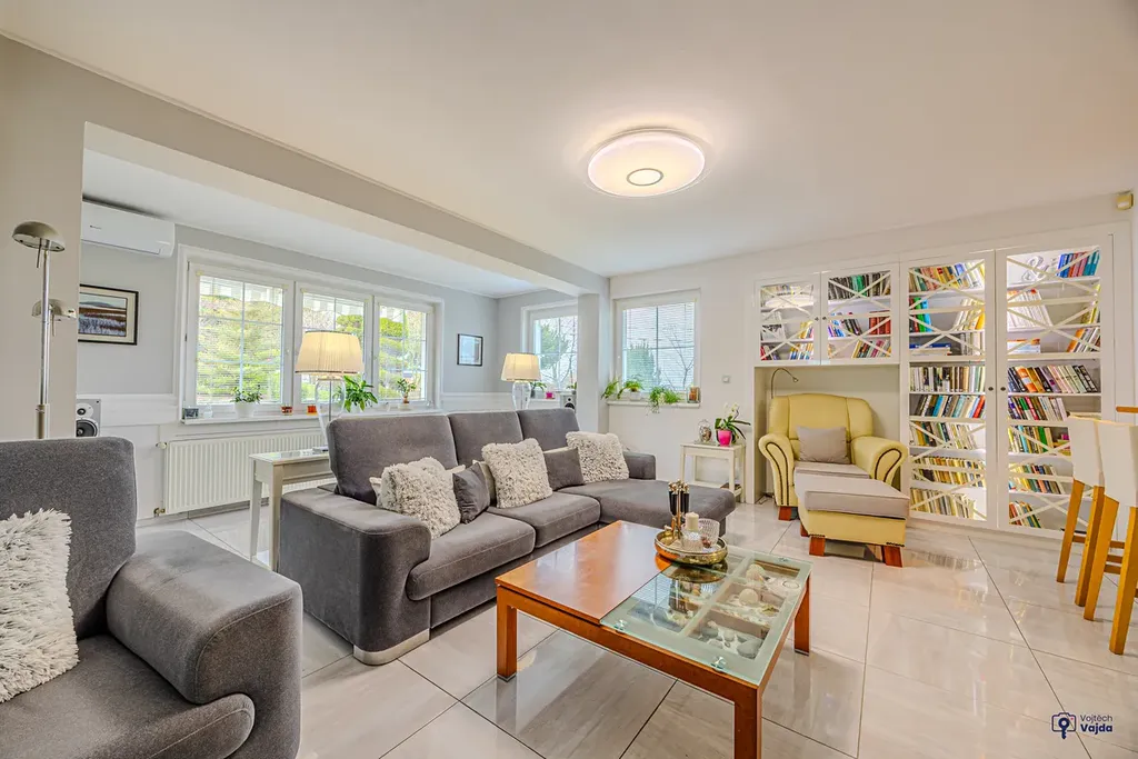Interiér domu byl navržen s důrazem na kvalitu, prostor a funkčnost. O vytápění domu se stará tepelné čerpadlo značky Nibe, které zajištuje efektivní a úsporný provoz. V horkých letních dnech oceníte klimatizaci. Velkou přidanou hodnotou je instalovaná fotovoltaická elektrárna, díky které jsou měsíční náklady na energie prakticky nulové. Celkové roční náklady na elektřinu za rok 2025 byly 26 tis Kč a celkové příjmy díky smlouvě na fotovoltaickou el. byly 35 tis Kč. S ohřevem teplé vody pomáhají solární kolektory.