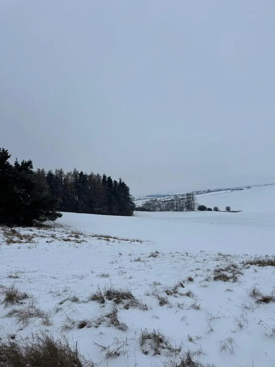Pozemek navazuje na polní cestu, která je z horní části parcely (proběhla částečná těžba).
