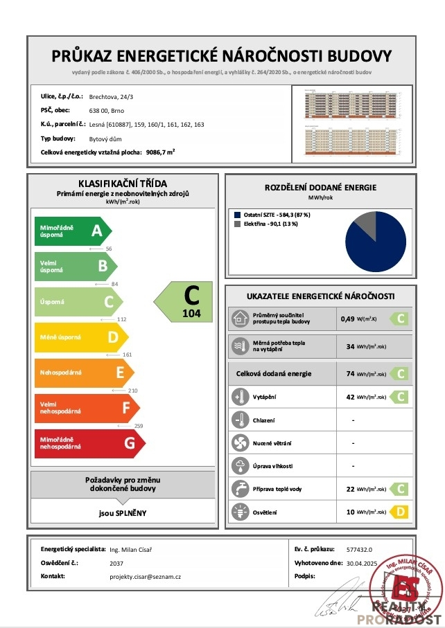 Nabízíme ke koupi byt 3+1v Brně na Lesné, ul. Brechtova v 8.p./8. s krásným výhledem, v panelovém domě s výtahem nabízí klidné bydlení v bezprostřední blízkosti Čertovy rokle i veškeré potřebné občanské vybavenosti. Celková plocha bytu 74 m2 + sklep 2m2 a balkon 3,5 m2.