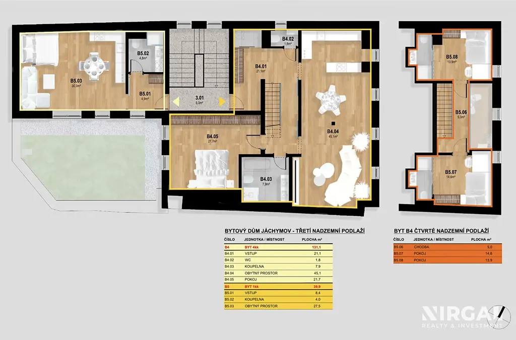 Nabízíme k prodeji moderní byt 4+kk o velikosti 131 m², situovaný ve 3. nadzemním podlaží nově vznikajícího projektu Rezidence Ludmila. Jedná se o výjimečný developerský projekt v samotném historickém centru Jáchymova, na náměstí Republiky, který představuje novou úroveň citlivého propojení historické zástavby s moderním standardem bydlení a investičním potenciálem.