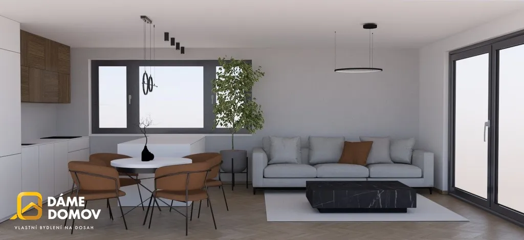 Dům se skládá z prostorného obývacího pokoje propojeného s kuchyní. Elegantní koupelna je vybavena vanou a sprchovým koutem. Dále zde najdeme 3 ložnice, samostatné WC a technickou místnost. K domu bude náležet parkovací stání pro 2 automobily a venkovní terasa.