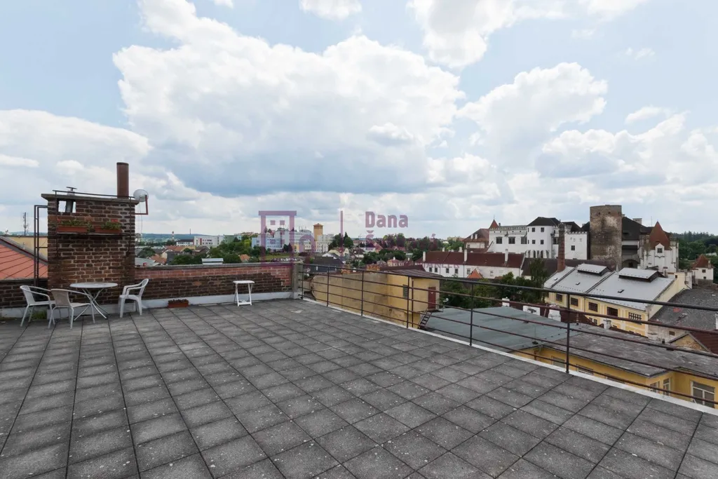 K dispozici je velká společná (pro všechny byty v domě) terasa na střeše domu s výhledem na zámek.