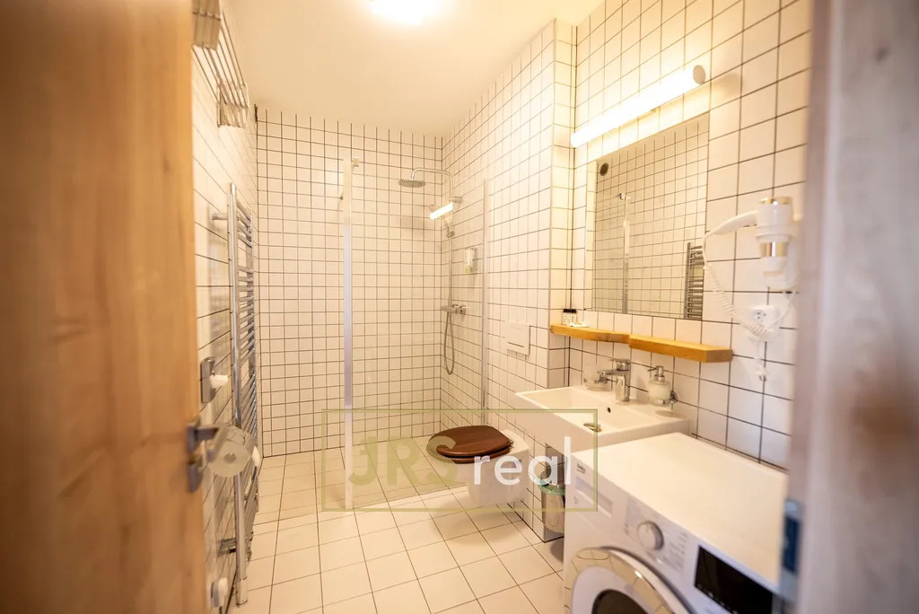 Ve výhradním zastoupení majitele nabízíme k pronájmu útulný a prakticky řešený mezonetový byt o dispozici 2+1 a rozloze 57 m² s vlastním vstupem i terasou. Dominantou bytu je prostorný obývací pokoj, který nabízí rohovou pohovku s možností rozložení na dvě lůžka vč. úložného prostoru, nechybí ani televize. Moderní kuchyň je plně vybavena kuchyňskou linkou se čtyřmi indukčními plotýnkami, lednicí s mrazákem, mikrovlnnou troubou a myčkou, což zajišťuje maximální komfort při každodenním užívání. Ložnice je vybavena manželskou postelí a pohovkou s možností dvou přistýlek. V koupelně se nachází umyvadlo, sprchový kout a pračka se sušičkou. Velkým benefitem je vlastní terasa, která poskytuje příjemné místo pro relaxaci, posezení nebo trávení volného času s rodinou a přáteli. Dvoupodlažní řešení bytu přináší přehledné rozdělení denní a klidové zóny, což zvyšuje komfort bydlení. Vlastní vstup zajišťuje maximální soukromí a pocit bydlení v rodinném domě. Samozřejmostí je klimatizace a přístup ke společné TV anténě (DVB-T2). K bytu náleží jedno parkovací stání. V celém objektu je využíváno ekologické řešení – splachování pomocí tzv. šedé vody ze studny a částečné využití fotovoltaiky pro snížení provozních nákladů. Na rozsáhlém pozemku se navíc nachází nabíjecí stanice pro elektromobily. Byt je ideální pro rodinu nebo náročnější klienty hledající více prostoru a je ihned k nastěhování. V případě zájmu o prohlídku kontaktujte makléře.