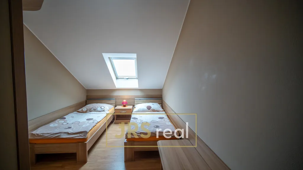 Po vstupu do nemovitosti Vás přivítá chodba, odkud vede schodiště do obytné části, kde se nachází 5 útulných, plně vybavených pokojů s celkovou kapacitou 11 lůžek. Každý pokoj disponuje vlastním sociálním zázemím – koupelnou se sprchovým koutem a toaletou, což zajišťuje maximální soukromí a pohodlí pro hosty.