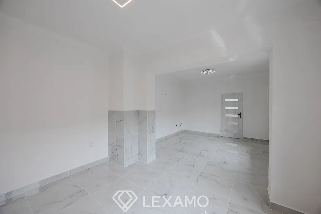 Dispozici domu tvoří obývací pokoj s kuchyňským koutem, ložnice a sociální zázemí. Další pokoj je přístupný přes průjezd a představuje zajímavý prostor s potenciálem rozšíření – nabízí se zde možnost vybudování samostatné bytové jednotky s vlastní koupelnou, WC a kuchyňkou, případně využití jako ateliér, pracovna či pokoj pro hosty.